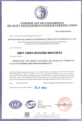 青島世紀(jì)海洋環(huán)保新材料有限公司是專(zhuān)業(yè)生產(chǎn)硅膠、氯化鈣、蒙脫石等系列干燥劑的企業(yè)。 公司擁有先進(jìn)的干燥劑生產(chǎn)、包裝、流水線(xiàn),并且擁有專(zhuān)業(yè)的技術(shù)隊(duì)伍,頭等的檢測(cè)設(shè)備,產(chǎn)品通過(guò)ISO9001國(guó)際質(zhì)量體系認(rèn)證,符合歐盟RoHs指令、REACH法規(guī)的要求。